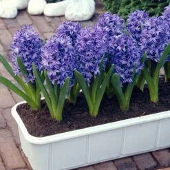 Blue Jacket is one of the popular newer hybrids, and no wonder. In the flower world, purple is common but blue is very rare. In fact, true blue is the rarest color in flowers. So here you have it–all the heavenly fragrance of the hyacinth and true blue, too! Planting Hyacinths: Daffodils may be the symbol of spring. Tulips add dramatic color. But its the hyacinths that bring the perfume. One of the most powerfully fragranced blooms in the flower kingdom is the justly famous Dutch hyacinth–the result of hundreds of years of hybridizing a lovely little wildflower from Turkey–now an upright torch of incredible color and unmatched perfume. Plant your hyacinth bulbs close together for a dramatic display, either in groups of one color or as a rainbow of several shades. Many gardeners think they look best in close groups of 3, 5 or more. Hyacinths must have good drainage, so be sure to plant them where they’ll never be in standing water. With some shade, the flowers will last longer than in full sun. And next spring, don’t forget to stop and smell the hyacinths!