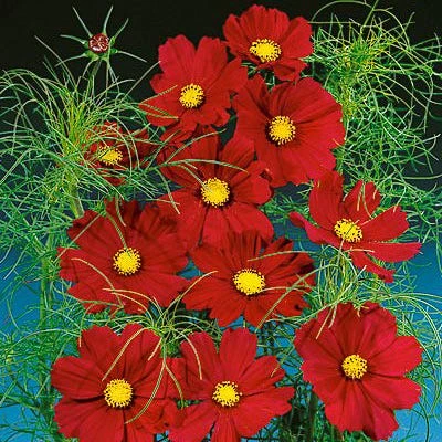 The originals are wildflowers, of course, and are native to our own southwest and more commonly, Mexico. This tells you cosmos don’t mind hot dry, conditions. In fact, some consider cosmos desert plants. But they’re incredibly adaptable. And ever since some plant explorer gathered seeds from the rocky wilds of Mexico and transplanted them into “good garden soil,” the world has known that they not only thrive, but enjoy our loamy, well-watered gardens. And if they’re not fertilized too much, they rapidly develop into large branching plants with deep green fern-like leaves. If you have a dry season, cosmos plants don’t care, and revert to their drought-tolerant roots. Best of all, no matter where they’re growing, they cover themselves with more and more wide (up to 4″) daisy-like blooms from midsummer on. Only a hard frost stops the cosmos parade. They’re fantastic as a blooming screen, or a background for shorter plants. And the big bonus: a grand stand of this garden classic in late summer can provide months of long-stemmed cut flowers for a whole neighborhood.