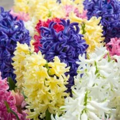 Plant your hyacinth bulbs close together for a dramatic display, either in groups of one color or as a rainbow of several shades. Many gardeners think they look best in close groups of 3, 5 or more. Hyacinths must have good drainage, so be sure to plant them where they’ll never be in standing water. With some shade, the flowers will last longer than in full sun. And next spring, don’t forget to stop and smell the hyacinths!
