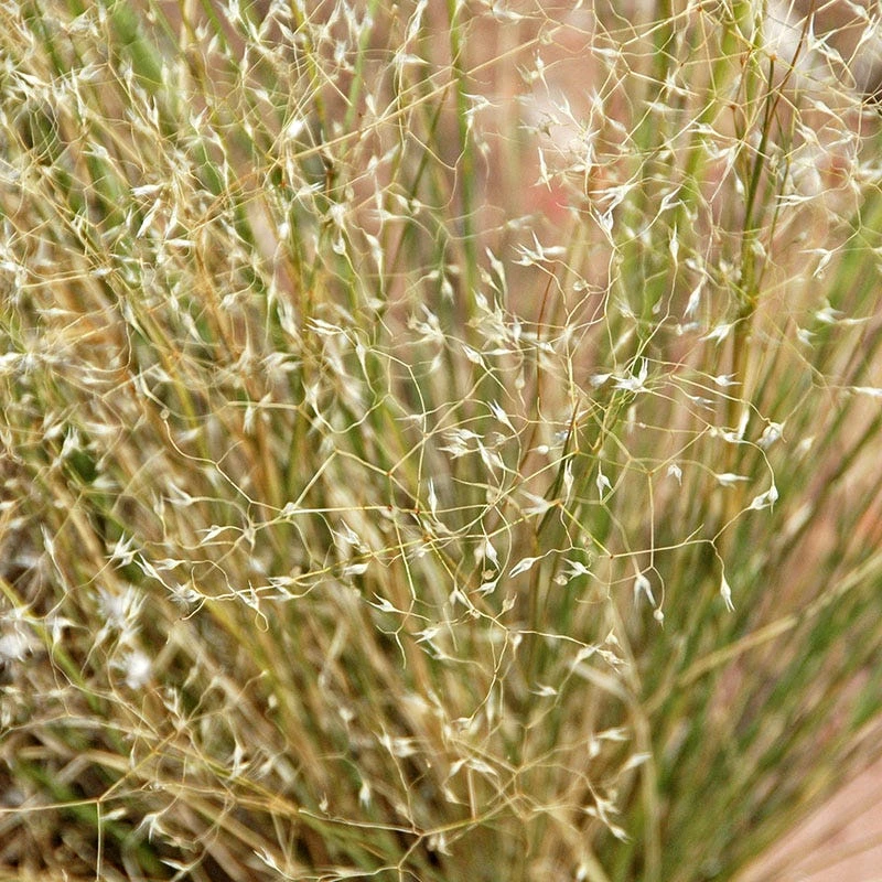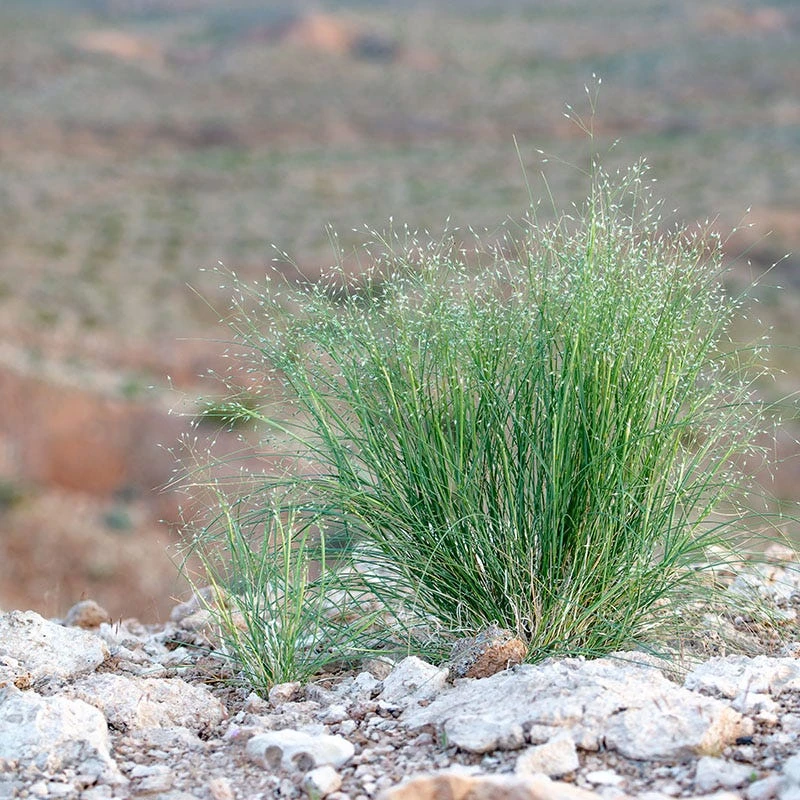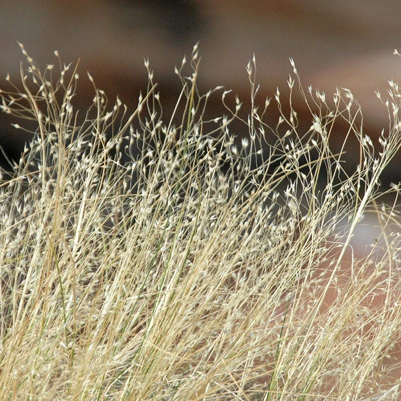 1-2’ tall and 1-2’ wide. Native to dry grasslands and Western deserts, Indian ricegrass is an ideal grass for low-water landscapes. A bunching-type grass, plant in groups for visual impact. Use Indian ricegrass to stabilize slopes and wash outs while providing native beauty. Plants are adaptable to a wide range of soils, but not tolerant of poor drainage or periods of flooding. Indian ricegrass provides forage for elk and deer as well as livestock, and is an important rangeland forage. Seeds are eaten by songbirds and small mammals which also find cover among the foliage. Use dried seed heads in floral arrangements. Plants are slow growing and need space to establish. Can be mowed to 8 inches in early fall.