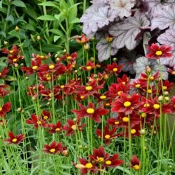 Plains Coreopsis, C. tinctoria, also called Calliopsis, is a much-loved wild annual and is a mainstay of wildflower meadow seed mixtures. (See seed in our Wildflower Encyclopedia)