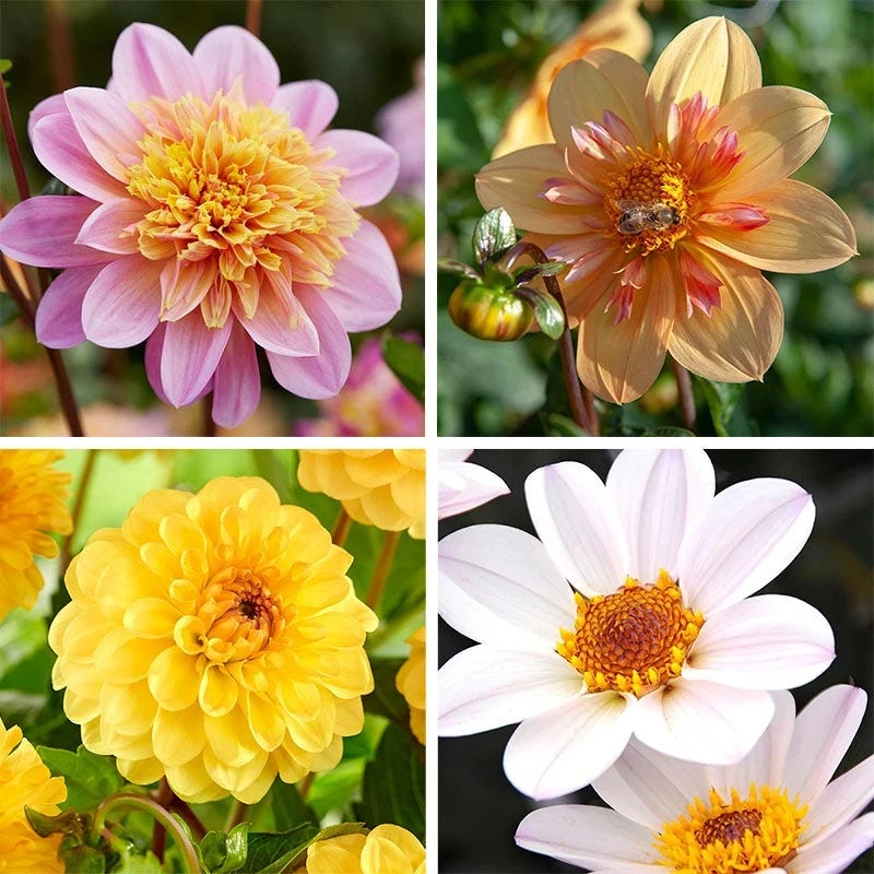 Our Little Charmers Dahlia Collection will help you grow Dahlias in containers and small space gardens. Whether your intent is a colorful garden bed or to fill your home with beautiful bouquets, this collection does it all. Stunning Dahlias have taken the gardening world by storm, and our collections highlight some of the best and brightest combinations to make garden and bouquet design easy. Dahlias are available in a broad range of flower forms, with colors ranging from soft pastels to vivid hues to deep rich shades. Dahlias are perennial in zones 8-10, but in cooler zones, tubers can be dug after frost comes, stored over winter, then re-planted the following spring.