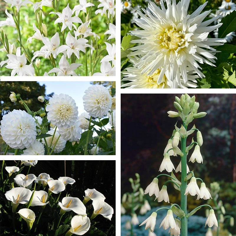 White flowers in our Magical Moonlight Summer Bulb Collection will enhance the luminescence of a moonlit evening. This bulb collection is the perfect complement to our Moonlight Pre-Planned Garden or Mini Moonlight Plant Collection. Our bulb collections will easily give you beautiful, harmonious results in garden beds container plantings. We plan, you plant: each collection is curated by our gardening experts, featuring groupings with complementary colors, heights, and bloom times. Summer Hyacinths are perennial in zones 7-10, Dahlias are perennial in zones 8-10, Caladiums are hardy in zones 9-10. In cooler zones, these bulbs can be dug after frost comes, stored over winter, then re-planted the following spring. Hardy Gladiolus are hardy in zones 5-8 and can be left in the ground to overwinter in those zones.