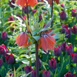 Crown Imperial Lilies create elegant focal points in the garden. The elegant umbrella-like flowers stand tall and look down at your other plants. Rubra is the most popular red, and will be like a beautiful sentinel rising over your other flowers. Spectacular!