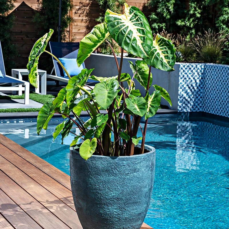 Give your garden an exciting tropical accent with one of summer’s biggest hits, Royal Hawaiian® ‘White Lava’ Elephant Ear. The Royal Hawaiian® series has been developed for performance in the garden and container; each is disease resistant with fabulous foliage, interesting stems, and a tidy habit.