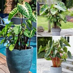 Our Touch of Drama Elephant Ear Collection features three favorite varieties of easy-to-grow tropical foliage. Gardeners love these easy-to-grow plants for their bold, architectural foliage to help give definition to outdoor spaces and to complement colorful flowers. Plant in spring when the soil has warmed in a full- to part-sun location in wet or moisture-retentive soil, and feed and water regularly for best results. Elephant Ears are also popular houseplants and can be grown in large containers with plenty of watering and added humidity. Elephant Ears are perennial in zones 7-10; In cooler zones, these bulbs can be dug after frost comes, stored over winter, then re-planted the following spring; if planted in containers, store in a frost-free place over the winter.
