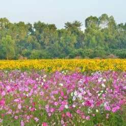 Includes 1 lb Cosmos and 1lb Wild Sunflowers. Annuals blooms quickly in the first growing season but must be replanted the following year. This easy-to-grow combination of long-blooming Cosmos and native Wild Sunflowers is a smart choice for any bare spot in the garden! Sprinkle seed in your cutting garden, along a fence line, in the back border of a garden, or even in large planters in your small space or container garden. The colorful yellow and pink blooms complement each other perfectly, attract a variety of pollinators to the summer garden, and offer up countless blooms for bouquets. What’s not to love? Plant this easy-to-grow combination in the fall for earlier blooms or sprinkle seed on bare soil in the spring once all chance of frost has passed.